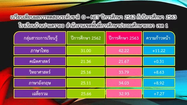 ผลสอบ O-net ประจำปีการศึกษา 2563 เมื่อเปรียบเทียบกับ ผลของปีการศึกษา 2562 ปรากฎว่า มีการพัฒนาขึ้นทุกรายวิชา ขอขอบคุณนักเรียนและคุณครูที่เกี่ยวข้องที่ช่วยกันติวตลอดระยะเวลาที่ผ่านมา ผลออกมาชื่นใจไม่น้อย ปีหน้าเราทำให้ดีกว่านี้นะจ๊ะ...สู้ๆต่อไปนะนักเรียน...ลว230464
